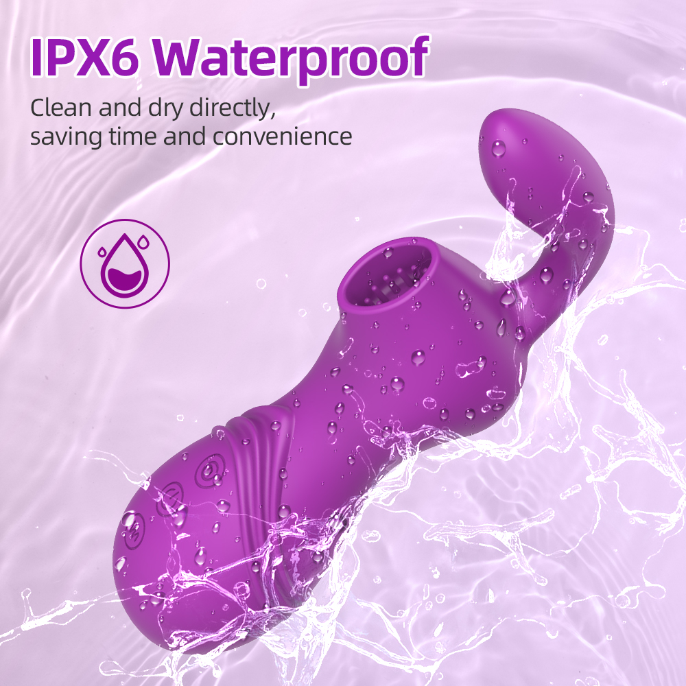 The device uses skin-friendly eco-friendly silicone + ABS, offering softness, comfort, and odor-free safety. It achieves an IPX6 waterproof rating and suits private bathroom play.