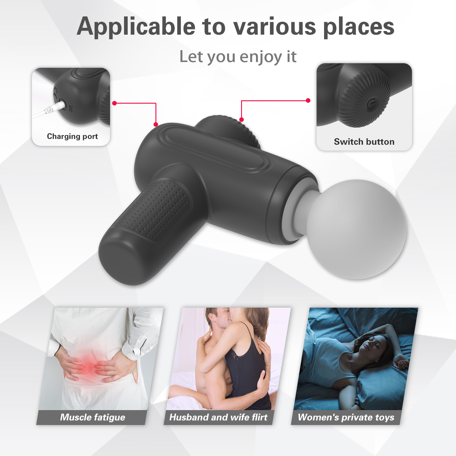 A massage gun vibrator dual-use. Bass low-frequency vibration hits the sensitive zone, and the silent mode allows the carpool party to get high. You can also use it as a sex toy to vibrate and stimulate nipples, clitoris and sensitive areas outside the vagina.