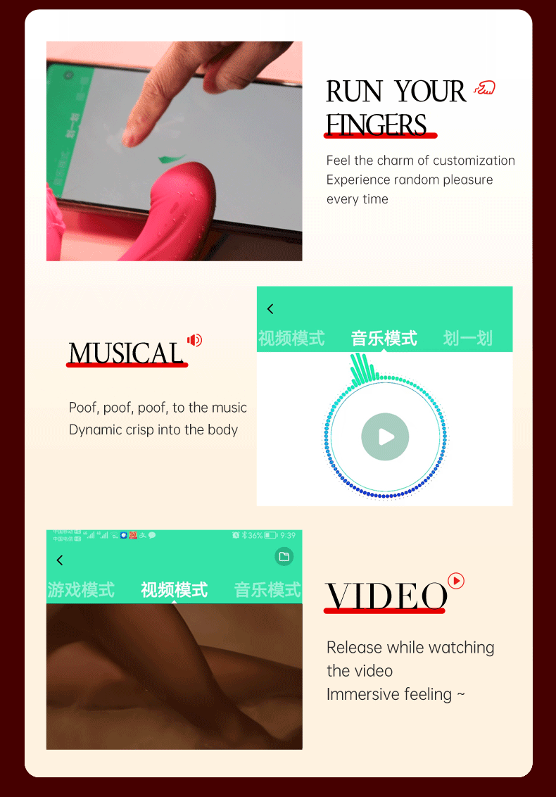 Function: 9-frequency vibration+9-frequency tapping+MuSe APP control