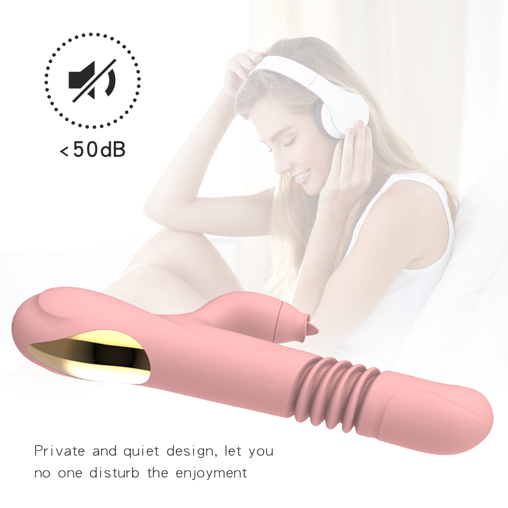 Retractable Vibrator simulates real thrusting pleasure with triple-frequency retractable technology. The manufacturer equips the dildo with a 12-frequency tongue-licking vibrator that precisely stimulates the clitoris for dual pleasure. They integrate a 42°C heating system to simulate body temperature and enhance comfort. They use skin-friendly, eco-friendly silicone and design it with IPX6 waterproofing for versatile use, including in the bathroom. USB/DC charging is safer and more convenient. It is a multifunctional erotic toy that combines intelligence, comfort and stimulation.