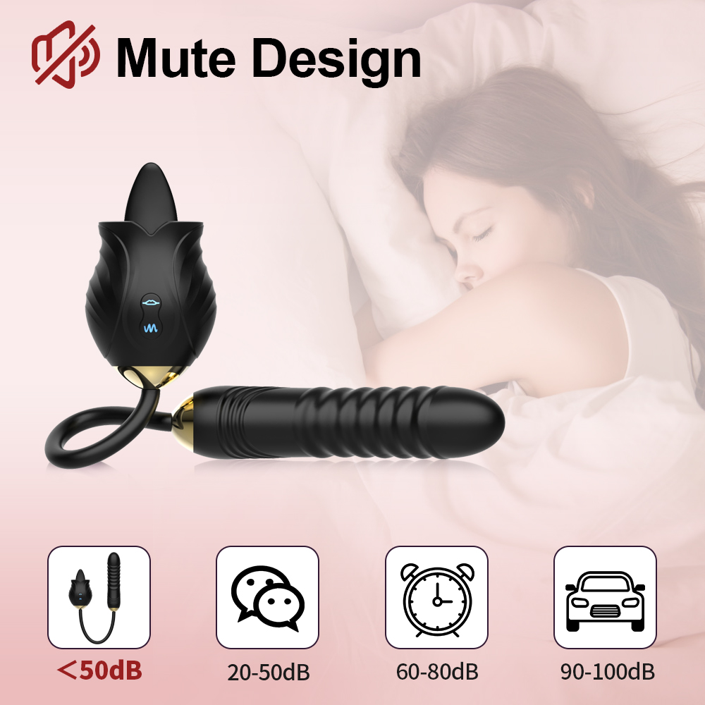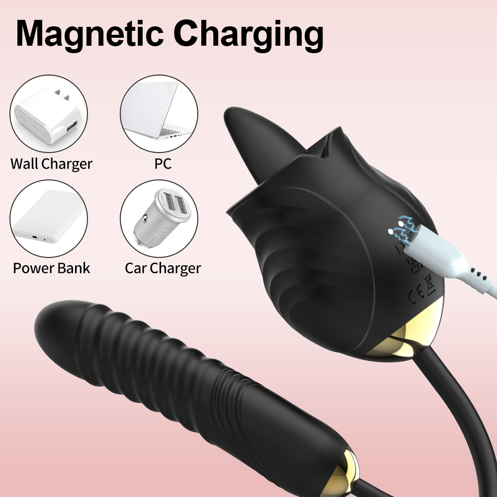Rose Licking Clitoral Vibrator, Retractable Dildo Dual Head Vibrator.