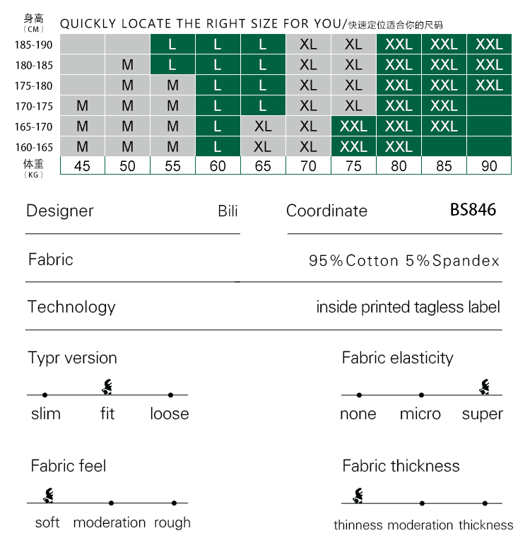| Material | COTTON 95% SPANDEX 5% |